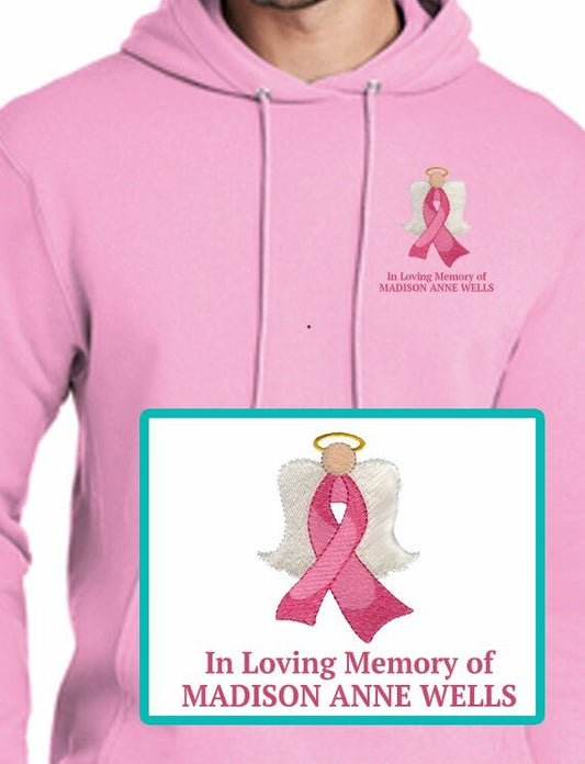 Breast Cancer Ribbon Angel Embroidery Hooded Memorial Sweatshirt (Ladies-Men)