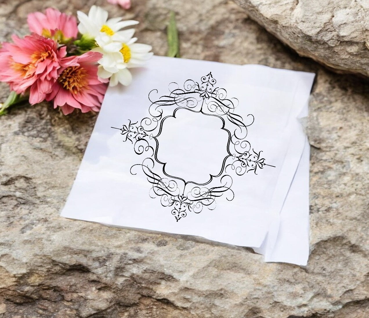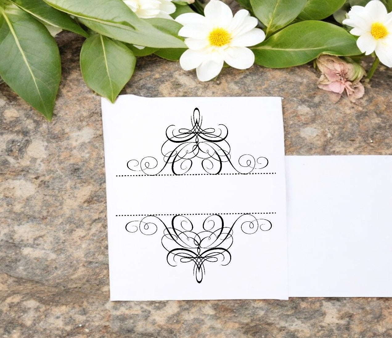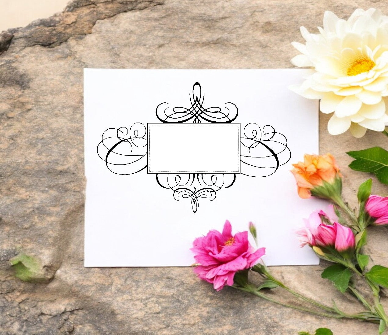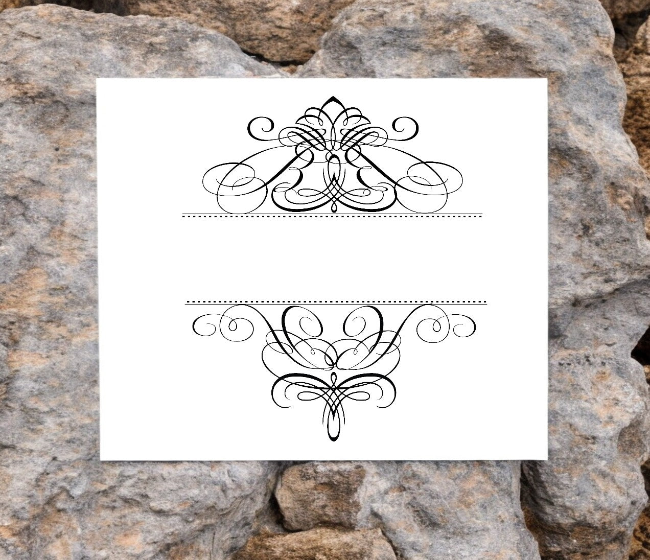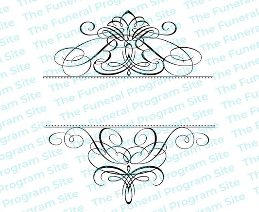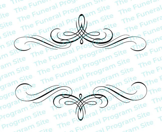 Elegant flourish frames and borders clipart are decorative design elements featuring intricate swirls, curls, and ornamental patterns, used to enhance the appearance of documents like funeral programs, invitations, and keepsakes.