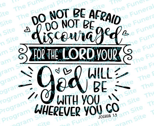 Great funeral bible verse from Joshua 1:5 which reads, "Do not be afraid do not be discouraged, for the LORD your God will be with you wherever you go." Great verse to live by and find strength in.
