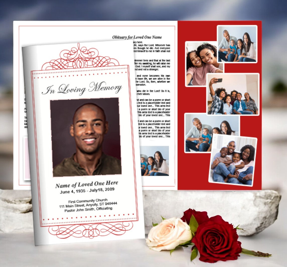 Images: Include photographs of the deceased at various stages of life to create a visual tribute. Make sure these images are high resolution for the best print quality.