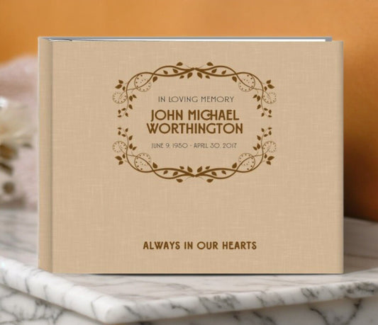 A funeral guest book is a cherished keepsake that plays a vital role in memorial services. It serves as a record of those who come to pay their respects, offering a space for attendees to write messages of condolence, share memories, and express their sympathy. The guest book helps the family remember and reflect on the network of support around them, capturing the names and thoughts of friends, family, and colleagues during a time of loss. Beyond its practical function, the guest book becomes a treasured memento, providing comfort to the bereaved as they revisit the heartfelt entries in the days and years to come.