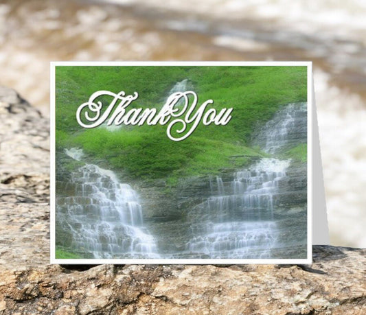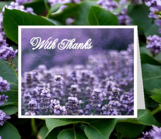 Typically features "Thank You" along with a simple graphic or photo related to the deceased or the nature of the card. The inside card area is reserved for a personal message. You can write something general to be printed on all cards, such as, "Thank you for your sympathy and kindness during our time of loss. Your support has been a great comfort to us during this difficult time."
