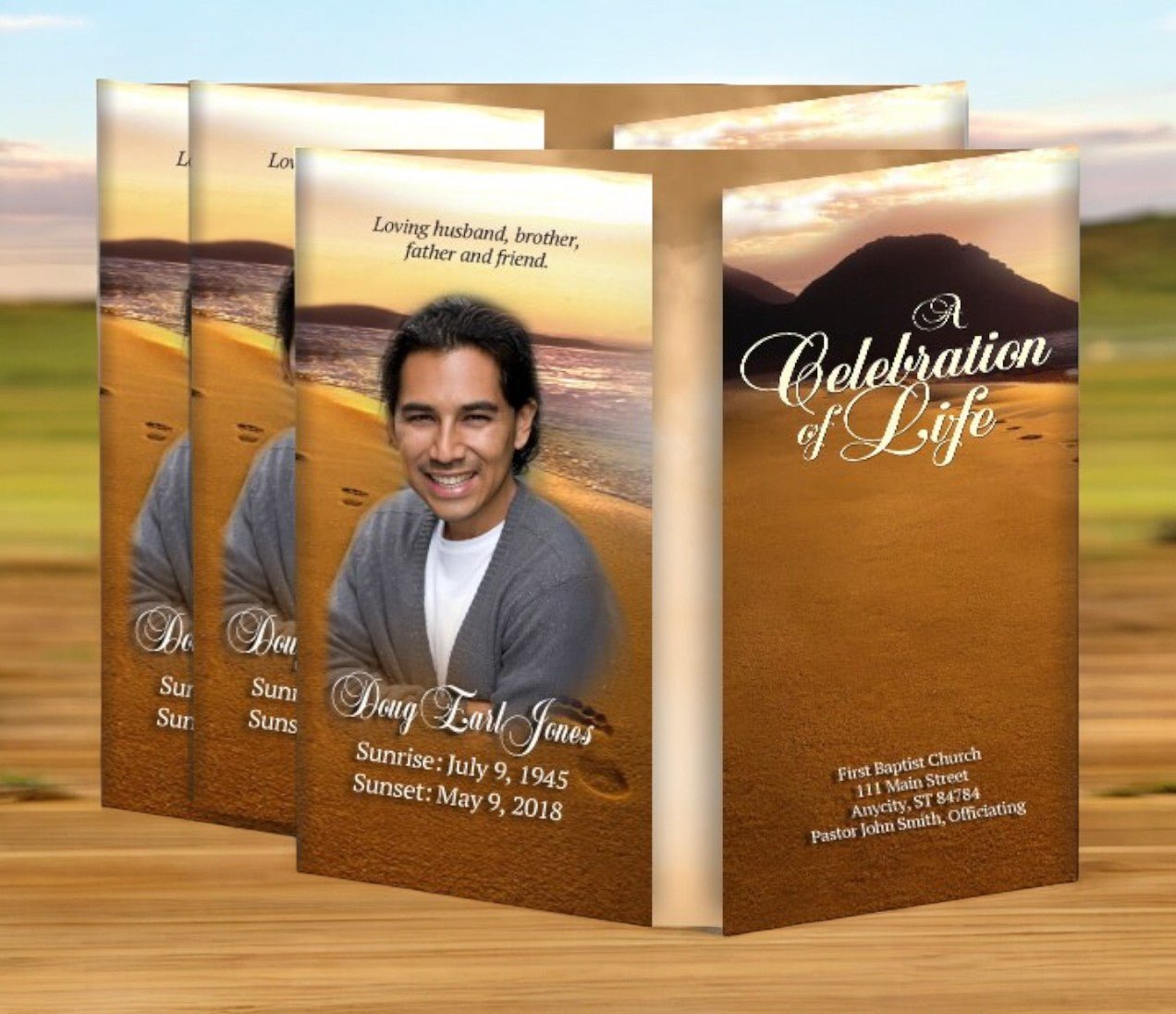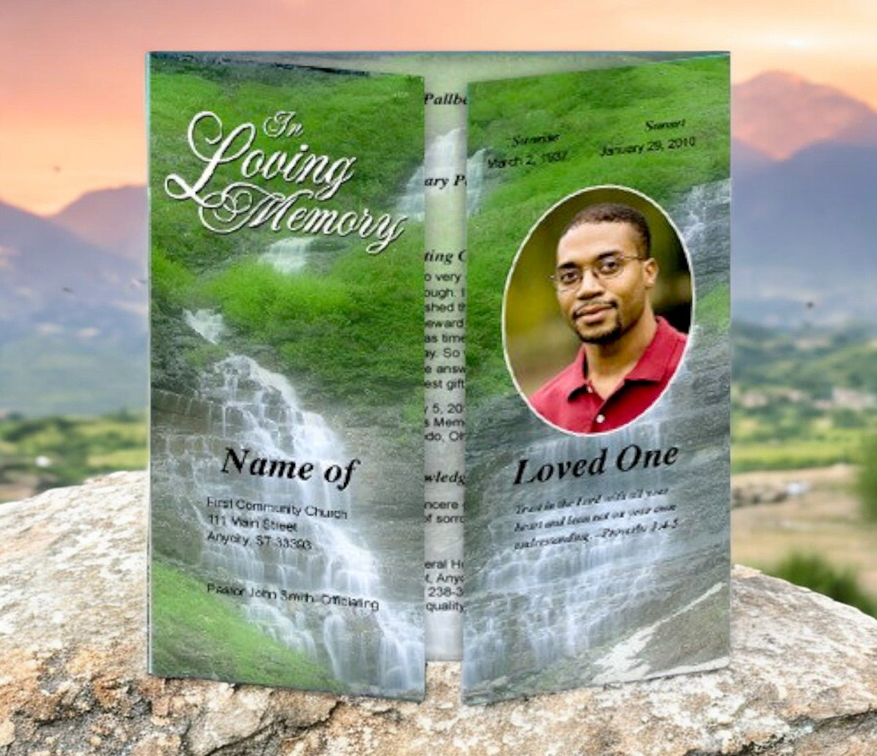 Visual Impact: The gatefold design offers a visually impactful way to present information. It allows for a structured arrangement of content while providing an aesthetically pleasing format that captures the attention of those attending the funeral service.Customization Possibilities: Gatefold funeral programs are customizable, allowing families to choose the overall design, color schemes, fonts, and imagery that best reflect the personality and preferences of the departed individual.Professional Printing: To achieve the best results with a gatefold funeral program, professional printing services are often recommended.