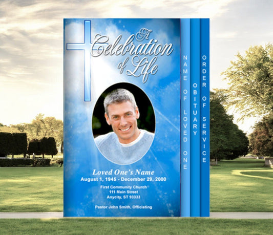 The Funeral Program Site offers a versatile range of graduated funeral program templates available for download, catering to diverse styles and sizes to suit every family’s needs. These templates feature a distinctive tabbed design, allowing for an organized and elegant presentation of a loved one’s life story, photos, and service details. Available in various sizes, these graduated programs ensure ample space for customization, enabling families to add personal touches that reflect the deceased's unique personality and legacy. The downloadable templates are easy to use with popular software such as Microsoft Word, Publisher, and Apple Pages, making the creation process accessible even to those without advanced design skills. With the wide array of styles and customization options, The Funeral Program Site’s graduated templates provide a beautiful and convenient way to honor and remember a loved one.
