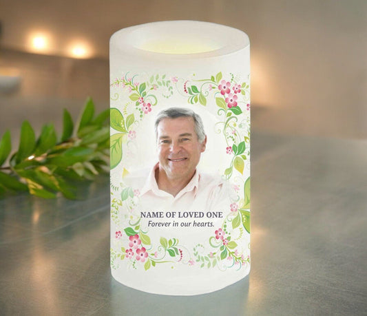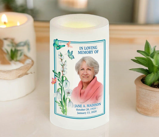 Butterfly Florals Personalized Flameless LED Memorial Candle