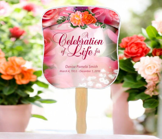 Pink Bouquet Personalized Heart Memorial Fan (Pack of 10)
