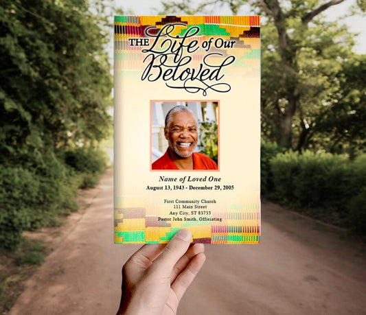 Ethnic, Culture, and Heritage Funeral Program Templates offer families a way to honor their loved ones with elements that reflect their cultural backgrounds and personal histories. These templates are specifically designed to incorporate traditional symbols, art, colors, and texts that resonate with specific ethnicities or cultural identities, allowing for a deeply personal tribute. For instance, a program for a Hispanic funeral might include vibrant colors and images of Our Lady of Guadalupe or use bilingual text to accommodate both English and Spanish speakers. Similarly, African or Caribbean templates might feature African kente cloth patterns or Caribbean motifs that celebrate the deceased’s roots and heritage. This attention to cultural details not only personalizes the service but also educates and connects attendees through shared cultural symbols and practices.