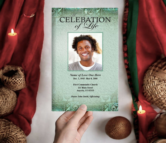 Ethnic, Culture, and Heritage Funeral Program Templates offer families a way to honor their loved ones with elements that reflect their cultural backgrounds and personal histories. These templates are specifically designed to incorporate traditional symbols, art, colors, and texts that resonate with specific ethnicities or cultural identities, allowing for a deeply personal tribute. For instance, a program for a Hispanic funeral might include vibrant colors and images of Our Lady of Guadalupe or use bilingual text to accommodate both English and Spanish speakers. Similarly, African or Caribbean templates might feature African kente cloth patterns or Caribbean motifs that celebrate the deceased’s roots and heritage. This attention to cultural details not only personalizes the service but also educates and connects attendees through shared cultural symbols and practices.
