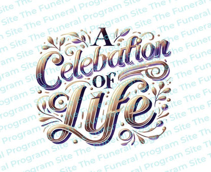 The "A Celebration of Life Funeral Program Title" is a beautifully crafted word art design that brings elegance and vibrancy to any memorial tribute. Featuring a graceful script font with a stunning gold and purple gradient effect, the "A Celebration of Life Funeral Program Title" adds warmth and sophistication to your program. The clean transparent background enhances its visibility, making the title stand out prominently while maintaining a refined and dignified look.