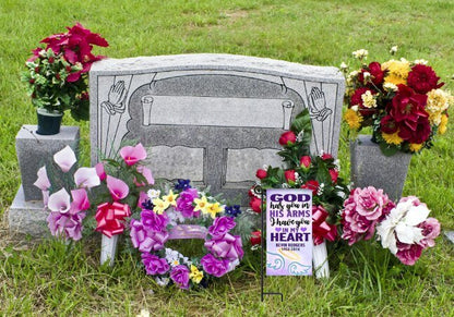 Transform any landscape into a touching remembrance with the memorial garden flag, A Moment In Our Arms Mini Memorial Flag With Stand. Designed to withstand outdoor conditions, this high-quality flag offers a lasting symbol of love and remembrance. Whether placed in a garden or next to a memorial stone, the cemetery garden flag serves as a gentle reminder of the cherished moments shared with a loved one.