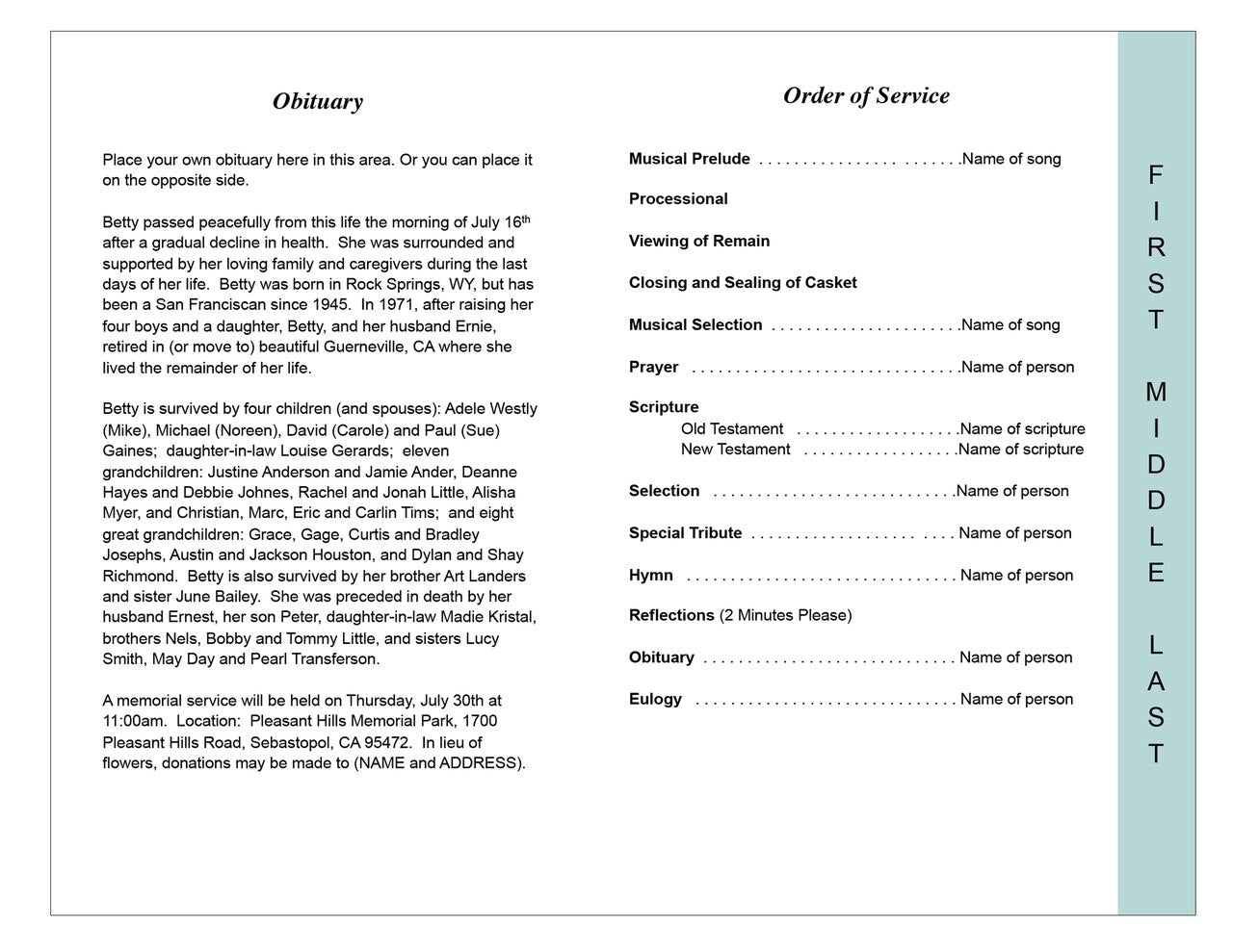 Enhance your funeral experience with our template editing service and have our graduated funeral program for you. Here's what's included: