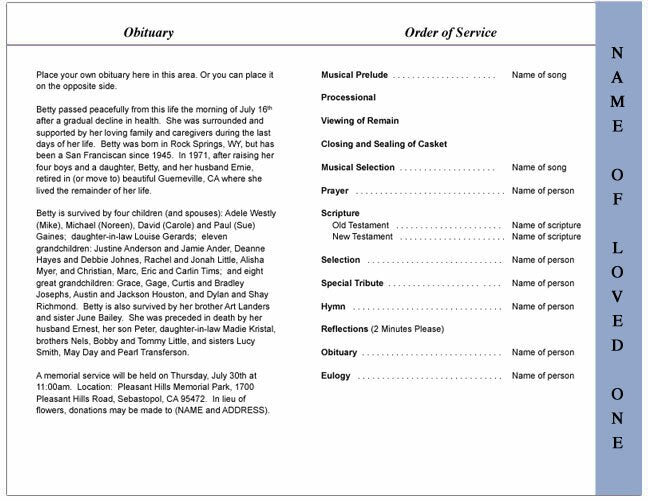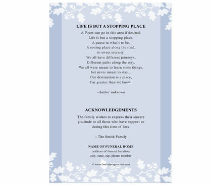 Enhance your funeral experience with our template editing service and have our graduated funeral program for you. Here's what's included: