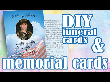 On the back, the Ambrosia Small Memorial Card Template includes a text field set against a complementary, uniform background hue, providing space for a personal message, poem, or tribute. The Ambrosia Small Memorial Card Template layout prints 4 cards per sheet of letter-size paper and can be easily customized to suit your needs, offering a meaningful and personalized way to honor a loved one’s memory.