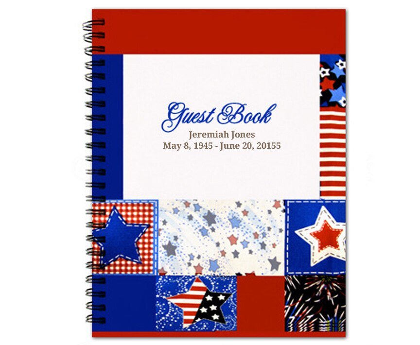 A wonderful American themed and quilted design graces the front and back cover of this patriotic wire bound funeral guest book. Experience a sense of pride and patriotism with each page of this stunning Americana guest book. The beautifully quilted cover design makes it a heartfelt tribute to honor your loved one's memory.