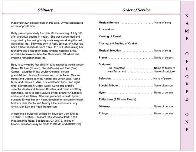 Enhance your funeral experience with our template editing service and have our graduated funeral program for you. Here's what's included: