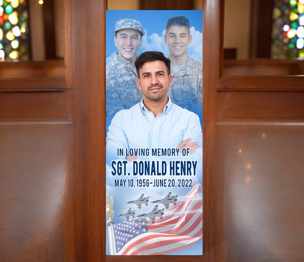 Capture the pride and honor of the United States Air Force with our versatile banner. Perfect for any occasion, this banner features a military/patriotic backdrop design with the iconic American flag and powerful jets. But what makes this banner truly special is the ability to personalize it with your own photos. Simply upload your favorite photo(s) and we will seamlessly integrate them into the design, removing the background for a professional and polished look.