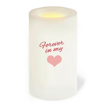 Crafted as a lasting tribute, the back of the candle features a touching message: “Forever in my heart” accompanied by a heart icon. This elegant flameless candle makes a meaningful keepsake, celebrating the light and love she brought to everyone around her.