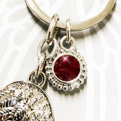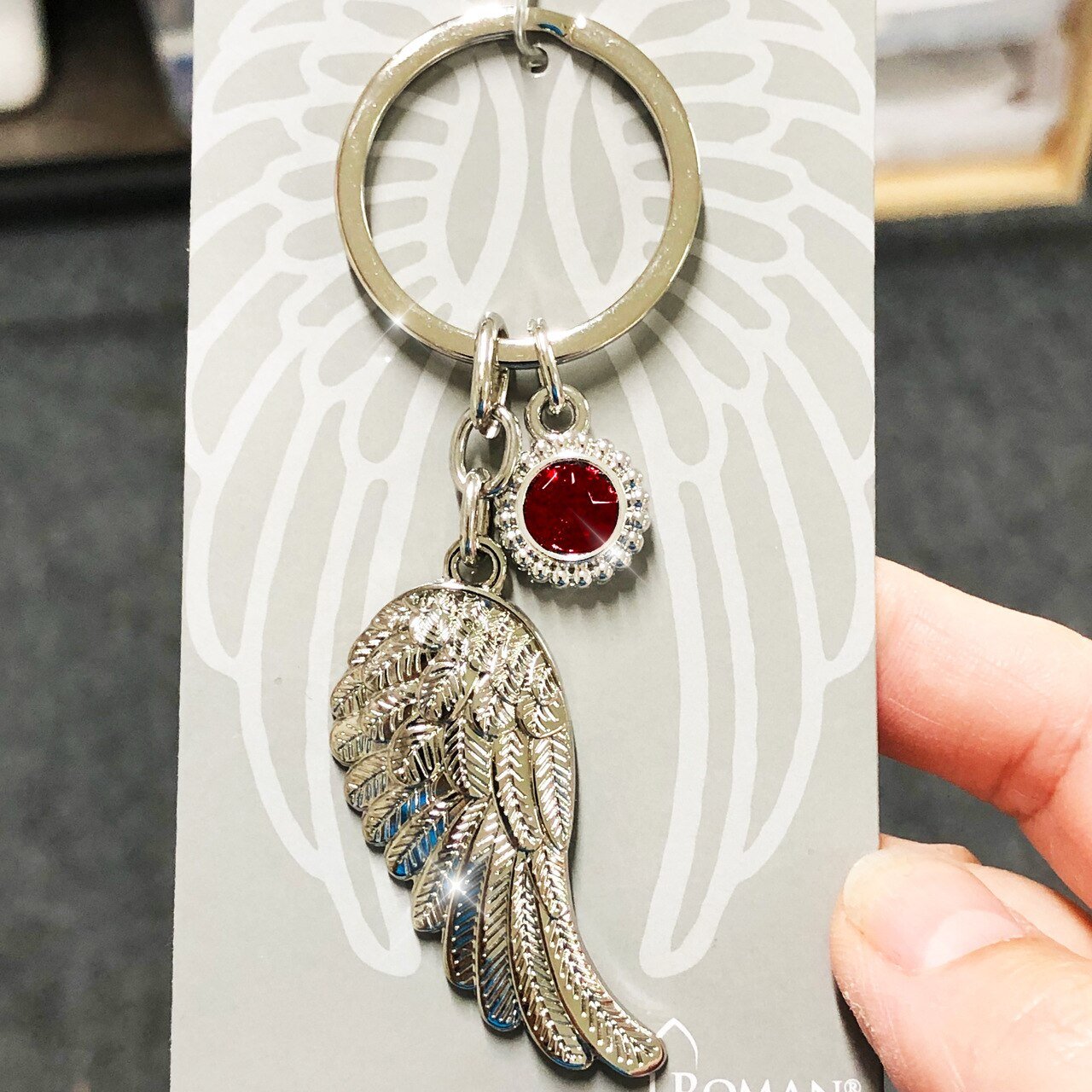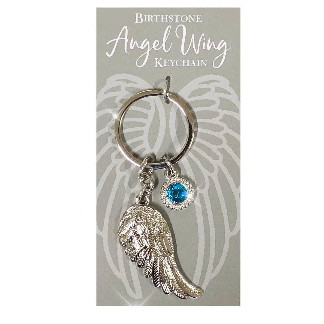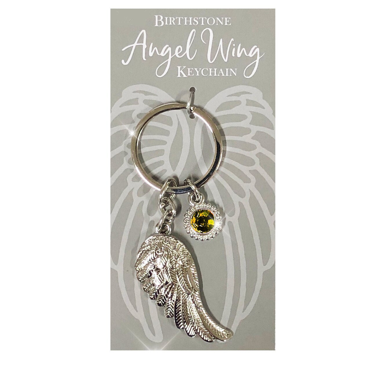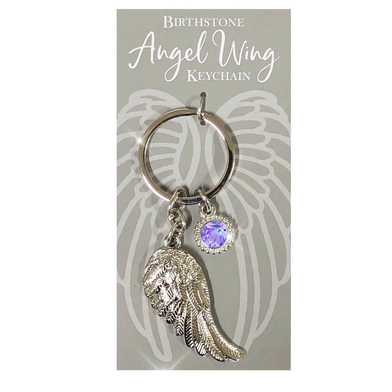 A perfectly appropriate and attractive sympathy gift anytime of the year. Our birthstone angel wing keychain is made of shiny silver coated metal with lovely details in the angel wing and a special circular birthstone. This combination is a great way to commemorate a loved one in the most subtle way! Choose their favorite color of birthstone or the month they were born. It's a special reminder of their continual presence in our hearts. Makes for a treasured and practical gift.
