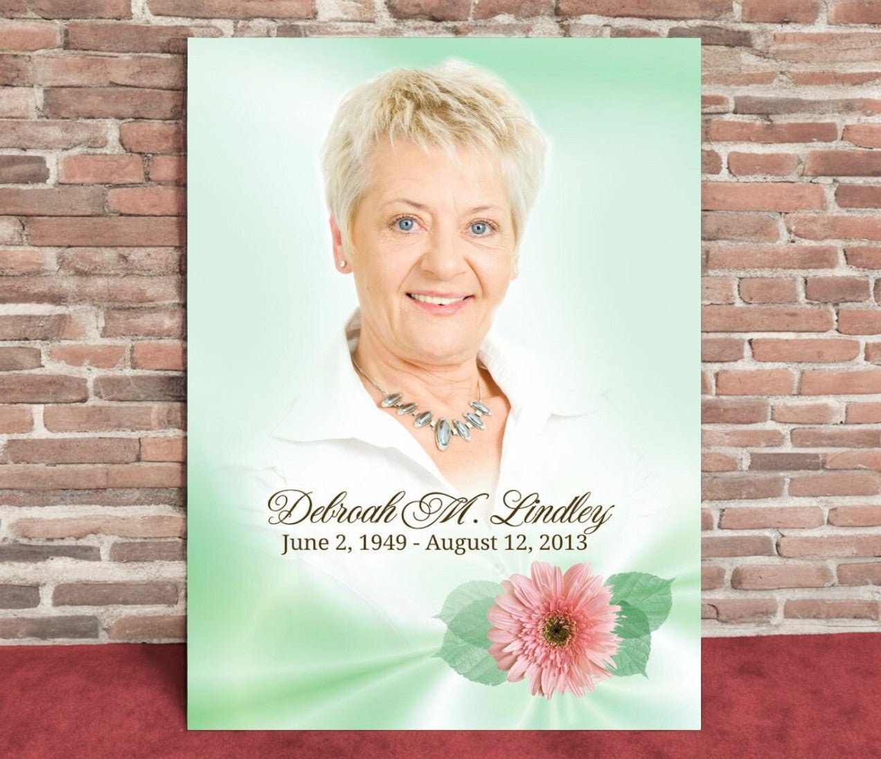 The Blossom Funeral Poster Memorial Portrait from The Funeral Program Site is a graceful way to commemorate the life of a loved one. Featuring a floral-inspired background with soft gradient shading, this design is beautifully accented by a delicate pink blossom adorning the lower corner. Your loved one’s photo is placed at the heart of the layout, creating a peaceful and elegant display that reflects love, serenity, and remembrance.