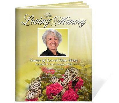 Funeral booklets are comprised of 2 or more sheets of paper folded in half or presented in a center fold layout. Staples in the center fold hold the pages together once folded. Complete design and printing service for all funeral booklets available in this collection! Don't have the time to create your funeral booklet? Let us do it for you. An all inclusive service that takes the hassle out of making a printed memorial.