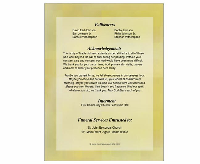 Furthermore, the adaptability of funeral booklet templates allows for personalization that can reflect the personality and life of the deceased. Families can choose templates that align with their loved one’s interests or characteristics — for instance, incorporating floral designs for a nature lover or geometric patterns for someone who appreciated modern art. This customization makes the funeral booklet not just a program for the service, but also a memorable keepsake that attendees can take home, serving as a lasting tribute to the departed.
