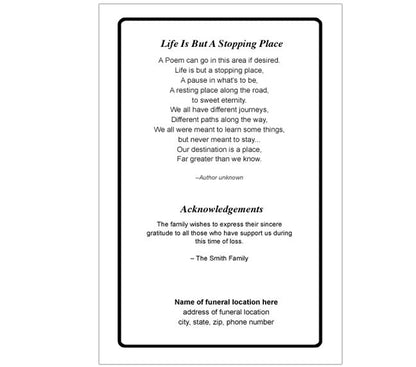 Enhance your funeral experience with our template editing service and have our graduated funeral program for you. Here's what's included: