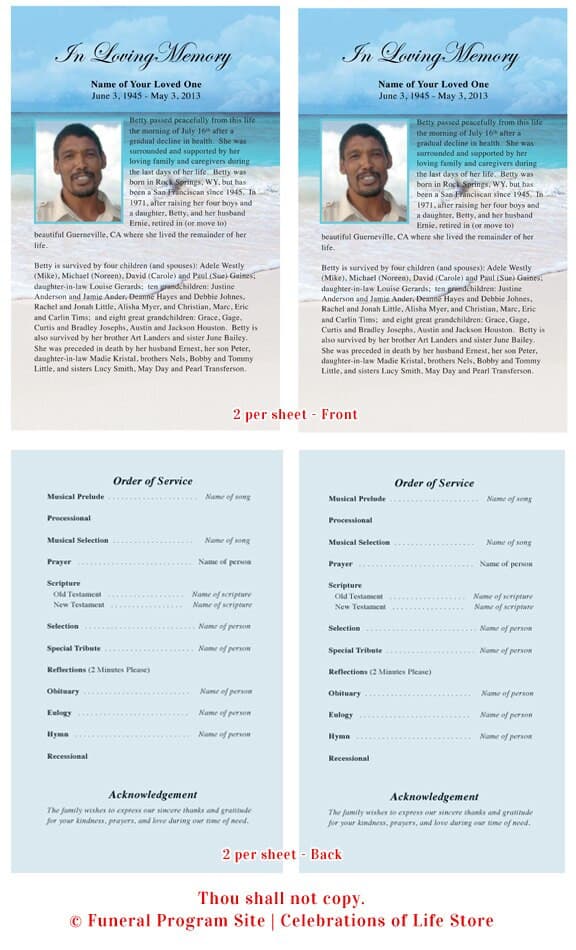 In addition to their personal and practical benefits, funeral flyer templates serve a communal purpose. They help organize the flow of the memorial service by detailing the order of events, thereby guiding attendees through the ceremony. This clarity is especially important in services involving multiple speakers, musical interludes, or various religious or cultural rituals. By laying out the schedule and activities, the flyer ensures that the service runs smoothly and remains focused on celebrating the life and memory of the deceased. In this way, a well-designed funeral flyer not only informs but also enhances the solemnity and coherence of the final tribute.