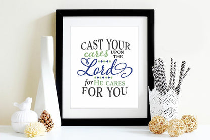 Whether you are enhancing one of our ready-made templates or creating a custom design of your own, the Cast Your Cares Bible Verse Word Art adds a graceful spiritual touch to any project. Its calming message makes it especially meaningful for times of grief, reflection, and prayer, offering gentle encouragement and hope through every design.
