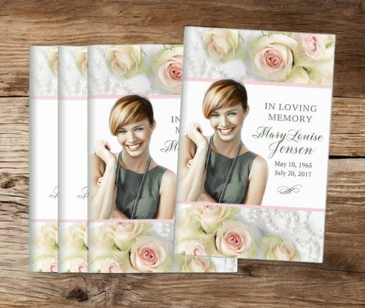 Blush Roses Bifold Funeral Program Design & Print (Pack of 50)
