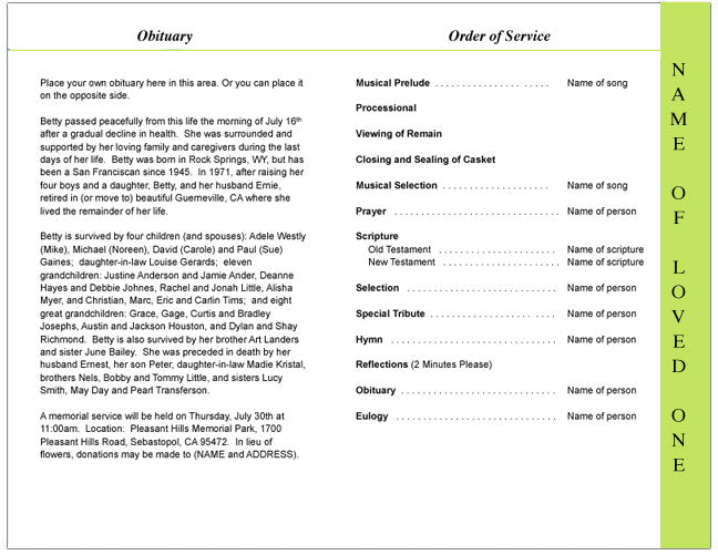 Enhance your funeral experience with our template editing service and have our graduated funeral program for you. Here's what's included: