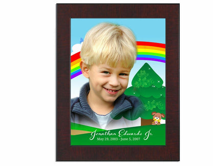 The Delight Funeral Poster Memorial Portrait from The Funeral Program Site captures the pure essence of youth and happiness in a heartfelt design that celebrates a life full of love and laughter. A colorful illustration featuring a tree, rainbow, and adorable dog creates a joyful and comforting setting for your loved one’s photo, symbolizing hope, innocence, and everlasting connection. Thoughtfully designed to bring a sense of peace and light, this portrait turns cherished memories into a work of art that will forever brighten your heart and home. Whether displayed at a memorial service or kept as a treasured keepsake, the Delight Funeral Poster Memorial Portrait honors your loved one’s beautiful spirit in a way that feels both tender and uplifting. Its warm tones and gentle imagery remind us that love never fades—it simply lives on in every rainbow, every smile, and every precious memory.