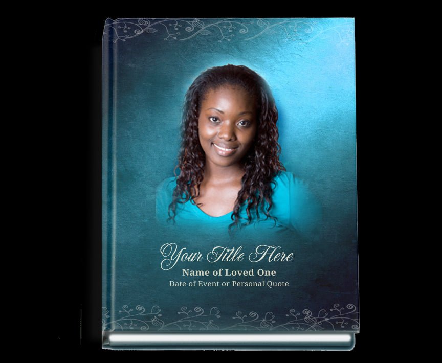 A simple yet elegant guest book with embellished floral motifs over a lit gradient background. Use for the funeral or memorial ceremony, wake or for any occasion. Add a loved one's name, dates, and photo on the front cover housed within a frame, if desired. This design is Available in Teal, Purple, Red, Blue or Pink.