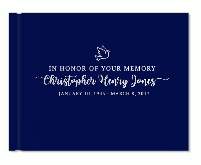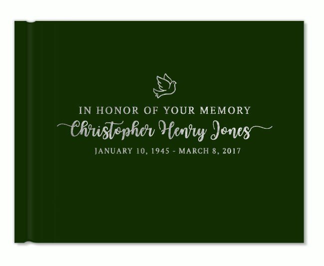 The Dove Peace Foil Look Landscape Funeral Guest Book offers a serene and elegant way to collect heartfelt messages during a memorial or funeral service. Designed with a soft velvet-touch cover and perfect-bind construction, this landscape-style guest book creates a classic presentation that reflects comfort and dignity. With a selection of rich, solid background colors, it brings a peaceful tone that honors your loved one with grace.