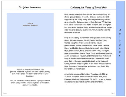 Enhance your funeral experience with our template editing service and have our graduated funeral program for you. Here's what's included: