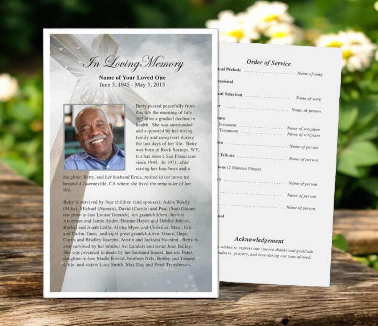 A funeral flyer template is an invaluable tool for creating a heartfelt and professional-looking memorial for someone who has passed away. These templates provide a predesigned framework that can be easily customized to reflect the unique life and personality of the deceased. Typically available in various formats, such as brochures, pamphlets, or single-page handouts, these templates allow users to add personal touches like photographs, favorite quotes, and a detailed life story. This customization capability ensures that the funeral flyer is not just informative but also a deeply personal tribute that resonates with all who receive it.