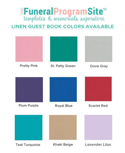 Perfectly suited for a memorial or funeral service, the linen-covered guest book not only enhances the presentation of your tribute but also serves as a lasting keepsake, allowing family and friends to revisit the love and support shared during this special occasion for years to come.