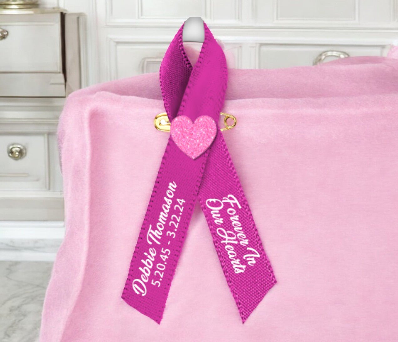 Each Glitter Heart Custom Awareness Ribbon can be personalized with names, life dates, and a meaningful message, making it a unique keepsake for memorial events. Designed for sharing, every pack includes 10 ribbons that serve as touching tokens of honor and memory among friends and family.