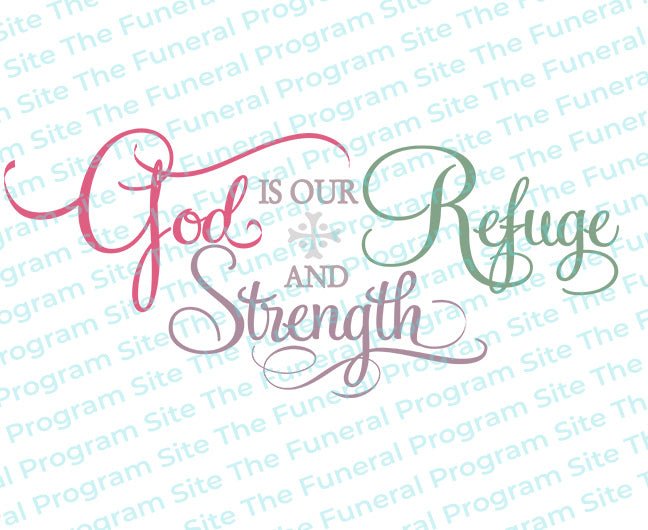 The God Is Our Refuge Bible Verse Word Art beautifully showcases the reassuring scripture, “God Is Our Refuge And Strength,” rendered in elegant, professional lettering crafted by The Funeral Program Site. Designed with a transparent background for maximum versatility, this comforting verse can be placed seamlessly over photos, textured designs, or solid colors without disrupting your layout. Its powerful message of divine protection and unwavering strength makes it a meaningful addition to funeral programs, memorial cards, tribute pages, or any remembrance project. Whether you’re designing a spiritual focal point or adding a subtle touch of encouragement, this high-quality word art blends effortlessly with any template. Ideal for families, designers, or funeral professionals, it brings emotional comfort, peaceful reassurance, and timeless beauty to honor a loved one with dignity and grace.