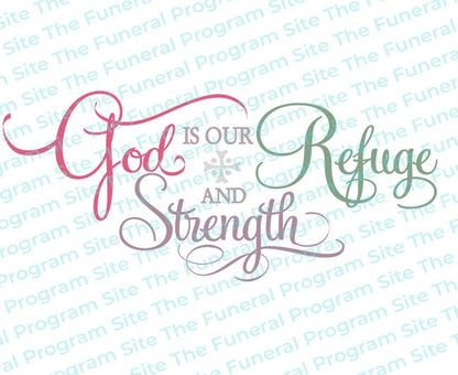 The "God Is Our Refuge Bible Verse Word Art" is perfect for memorials, funeral programs, or personal tributes. It offers a message of divine protection and strength, providing solace and peace during times of mourning and reflection.