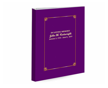 This custom funeral guest book binder provides a beautiful way to store and preserve cherished memories. Featuring a sleek jeweled tone color cover with elegant gold framing, it is personalized with the name and dates of your loved one, making it a touching tribute. The sturdy design ensures long-lasting protection for funeral programs, letters, and mementos. This binder is ideal for sharing and revisiting fond memories, offering a dignified keepsake for families to cherish. It is a versatile and multi-purpose product that can be used for various occasions, such as funerals, memorial services, or even as a guest book for special events.