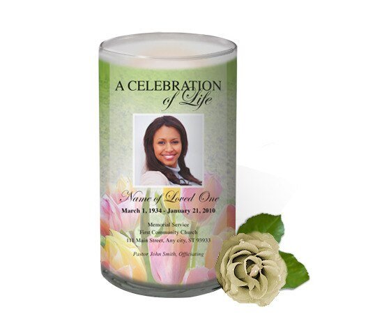 When illuminated, the candle’s warm glow enhances the delicate floral scene, offering comfort and a quiet space for remembrance. Whether displayed in your home or given as a thoughtful sympathy gift, this memorial candle from The Funeral Program Site serves as a beautiful reminder of love that continues to bloom.