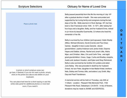 Enhance your funeral experience with our template editing service and have our graduated funeral program for you. Here's what's included: