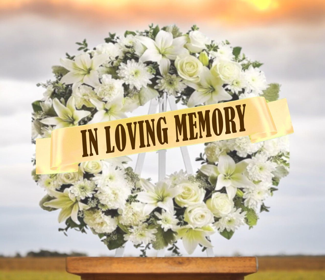 These ribbons are made from double face satin, a high-quality material known for its luxurious sheen and durability. Measuring 4 inches in width and 24 inches in length, the ribbons are substantial enough to make a significant visual impact on any floral display. The satin fabric adds an element of elegance and grace, reflecting the solemnity and respect of the occasion. The ribbons are meticulously crafted to ensure they maintain their beauty and integrity throughout the service, making them a fitting tribute to honor a loved one.