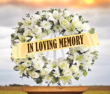 Crafted from high-quality double-faced satin, the “In Loving Memory” Funeral Ribbon Banner enhances wreaths, sprays, or bouquets with grace and sophistication. Its timeless design brings warmth and sentiment to the memorial, offering family and friends a comforting way to celebrate and remember a cherished life. Keep their memory alive through the beauty of flowers and the thoughtful addition of this elegant ribbon banner.
