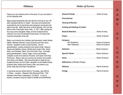 Enhance your funeral experience with our template editing service and have our graduated funeral program for you. Here's what's included: