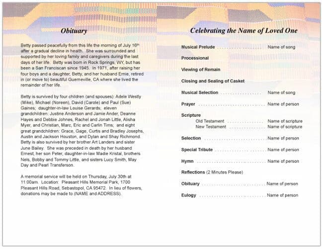 Creating a funeral bulletin using a template not only streamlines the process during a difficult time but also provides a tangible memory for attendees to cherish. It is a meaningful way to celebrate the life of a loved one and share their story with friends and family during the memorial service.