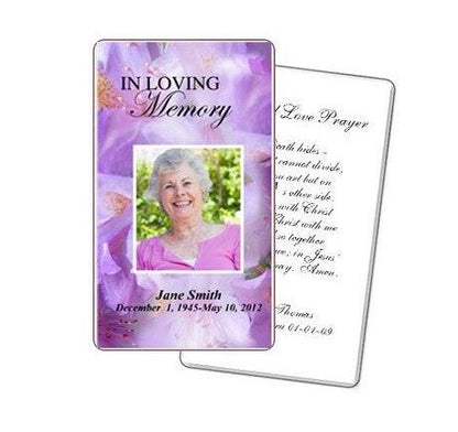 Ideal for honoring a cherished loved one with grace and beauty, the Lavender Prayer Card Template provides a serene and comforting design for moments of remembrance and reflection. Capture the essence of love and spiritual peace with this meaningful keepsake, designed to honor their memory with warmth and tenderness.