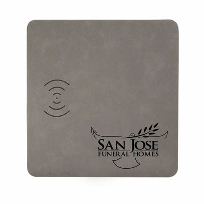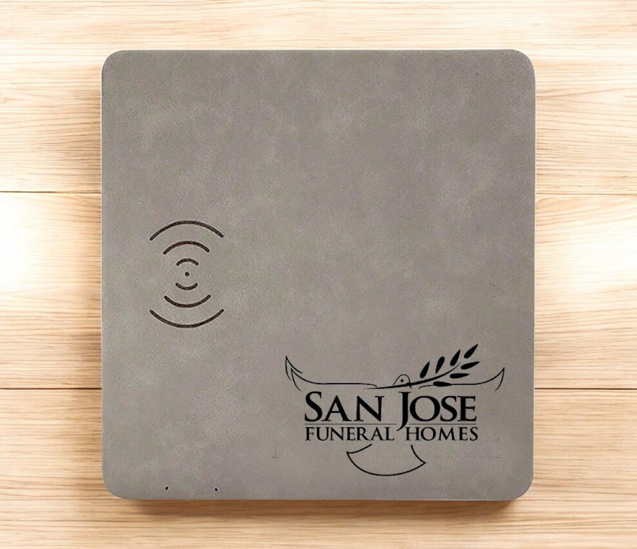 From The Funeral Program Site, our 8" x 8" personalized cell phone charging station mat is a thoughtful and practical accessory, customized with your funeral home logo. Compatible with both iPhone and Android devices, simply place your phone on the charging icon, and it powers up quickly and wirelessly—no cords needed.