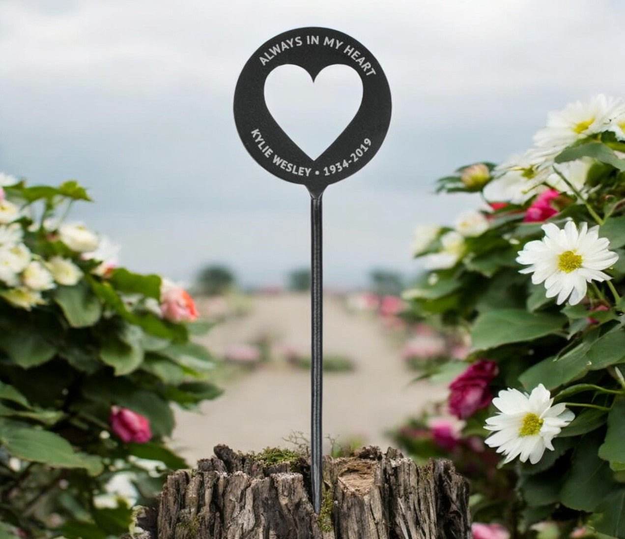 Memorial Garden Plant Stake Personalized Silhouette Open Heart