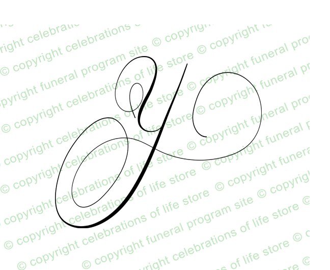 A beautiful and elegant monogram scripted letter “Y” created with a transparent background so it can be placed over any colored or pictured design. This refined letter is perfect for embellishing the front cover of a funeral program, instantly adding elegance to any plain template or document. You can also combine it with additional letters and place it anywhere within your program to achieve a polished and personalized look that enhances your layout with ease.